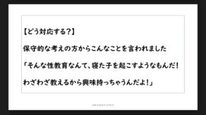 先生や保護者への性教育実践の中での受講者さんの反応だったり